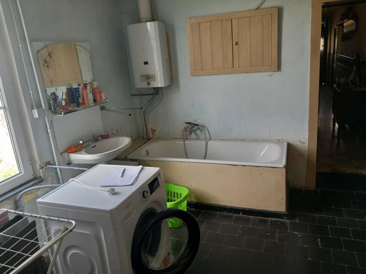 RDC : hall, cuisine non équipée, buanderie avec WC, SDB, salon salle à manger